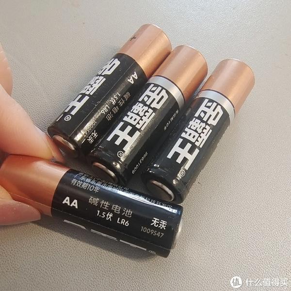✌他一板砖里有四块电池,每个电池都是1.5伏的。而且之前也做过一些功课,这种弱碱性电池不容易漏电,久放不坏,比较适合居家电器使用。