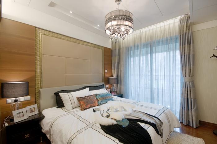 4,布艺床是现在很多家庭都喜欢的一种,而布艺床看上去给大家的感觉就是特别的暖和,而且颜色也非常的合适家居需要温暖的卧室。