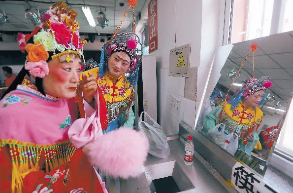 平日里魁梧的庄稼汉,在浓艳的戏妆下,也化身成为了反差极大的演出人物,给观众带来了难得的欢乐体验。