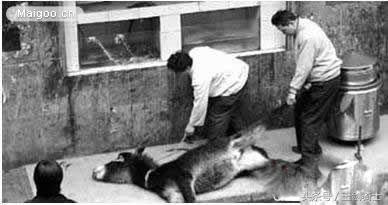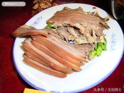 浇驴肉又名活叫驴。是以驴肉为主材的菜肴名。活驴固定好,旁边有烧沸的老汤。食用者指定要吃某一部分,厨师剥下那一块的驴皮,露出鲜肉。用木勺舀沸汤浇那块肉,等浇得肉熟了再割下来,装盘上桌。据说吃这道菜的,大部分并不是为了吃菜而吃菜,纯粹就是为了看如何浇驴和驴因疼痛的面目表情。真的太残忍了。