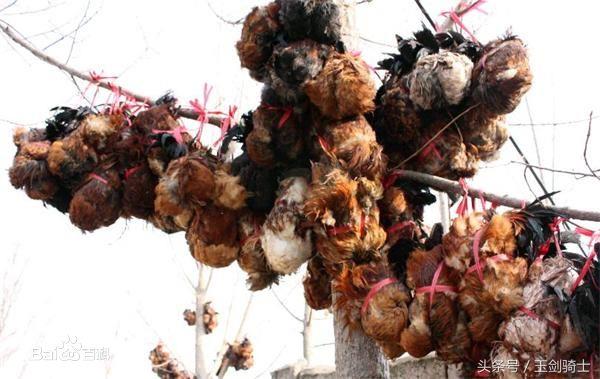 风干鸡又名刘皇叔婆子鸡,是湖北省荆门市沙洋县十里铺镇的传统名吃。这种鸡易保存又不失新鲜,醇香、软嫩,老少皆宜,深受当地老百姓喜爱。做这种东西时,需要一定的手法,速度必须非常快。这是藏菜,大师以极快的速度拔毛、取脏、填调料入鸡腹、缝上、挂于通风处(未放血杀死)。这时鸡必须还是活的,然后如风铃一般在风雪之中“咕咕”直叫,其景惨不忍睹。