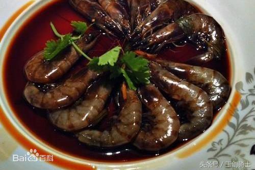 醉虾是上海以及宁波一带的一道特色传统名菜。顾名思义,就是把鲜活的虾放入酒碗中,其实这碗里已经加了自制调料了。虾倒进调好的汁里以后,用另一个碗把这个装虾的碗盖住,还能够很清楚的听见碗里的声音,虾在挣扎。碗一个劲儿的响着,可以想像得出来,虾跳的多么厉害了。没一会儿虾就醉了。把上面的碗拿开,虾已经醉了,呈现出一种半透明状态。虾放到口中,感觉很香,肉质很嫩。用这样的手法做出的虾,口感上和其他的料理虾的手法截然不同,酒和虾诠释了一种新的美味。食用者既可以尝到虾的鲜香,同时也可以尝到酒的洌香。