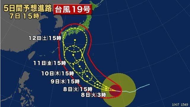另外据日本时事通讯社报道,7日,今年的第19号台风以猛烈之势从马里亚纳群岛海域向西挺近。今后,19号台风逐渐向北偏移,预计12日至13日期间逼近日本的本州、四国、九州地区,并有登陆的可能。
