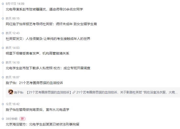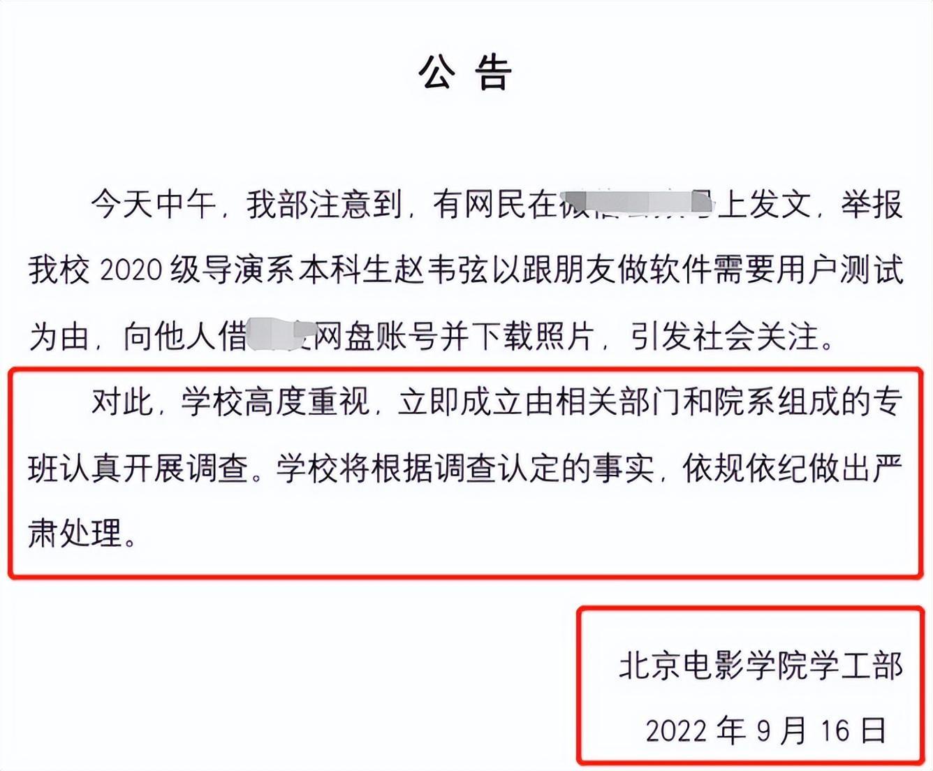 9月18日,有网友发帖爆料北电导演赵韦弦骚扰女生,以拍摄为由要求对方录制视频,通过生成软件测试获取近200人私密照片,这些行为明显已经触犯法律。