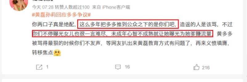 如今,多多再次被造谣然引热议黄磊孙莉夫妻发声明,而网友们并不买账,一部分人认为:这么多年不停地曝光自己的女儿,让未成年心智不成熟的多多早早出现在大众面前,被骂那么狠都不发声,现在被嘲教育方式反倒义愤填膺,来转移焦点。