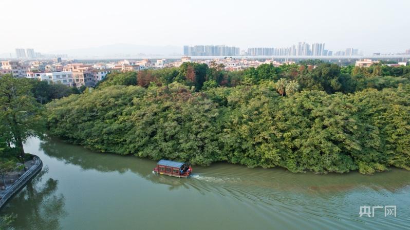 游船在古榕树旁的水道穿梭(央广网记者 官文清 摄)