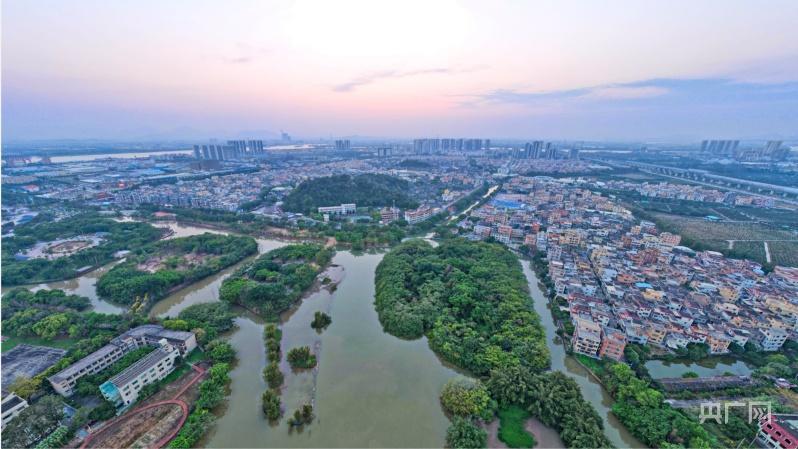 夕阳下的小鸟天堂与天马村(央广网记者 官文清 摄)