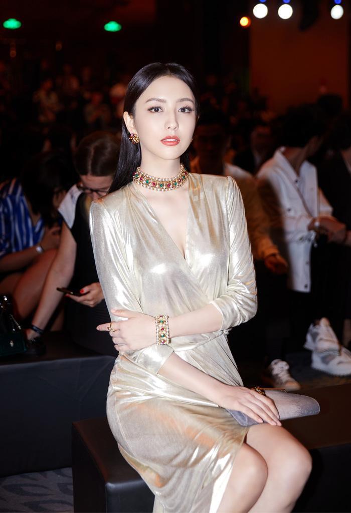 亮色系的裙装比小白裙、小黑裙要吸睛得多,但同样要考验一个人的气质和肤色,若是不想出错,就尽量避开饱和度高的荧光色系,选择今年更流行、更有质感的奶油白、香槟色、雾面蓝等等,颜色不会太明艳,特别是香槟色,颜色介于淡黄色与淡银色之间,高级而又十分雅致时尚。像佟丽娅这一身活动LOOK穿的,就是一条香槟色开衩连衣裙,色调吸睛而不刺眼,在黑色背景的衬托下更加突出了。