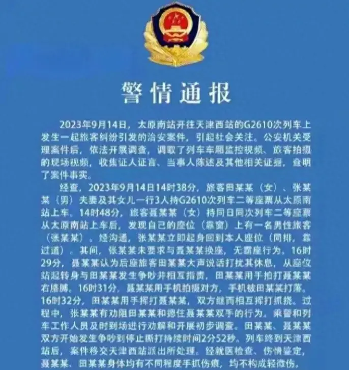 警方的调查结果揭示了事情的真相,让大家能够客观地看待这起高铁霸座事件。田大妈一家因先动手受到了处罚,而聂女士的还击不被视为违法行为。