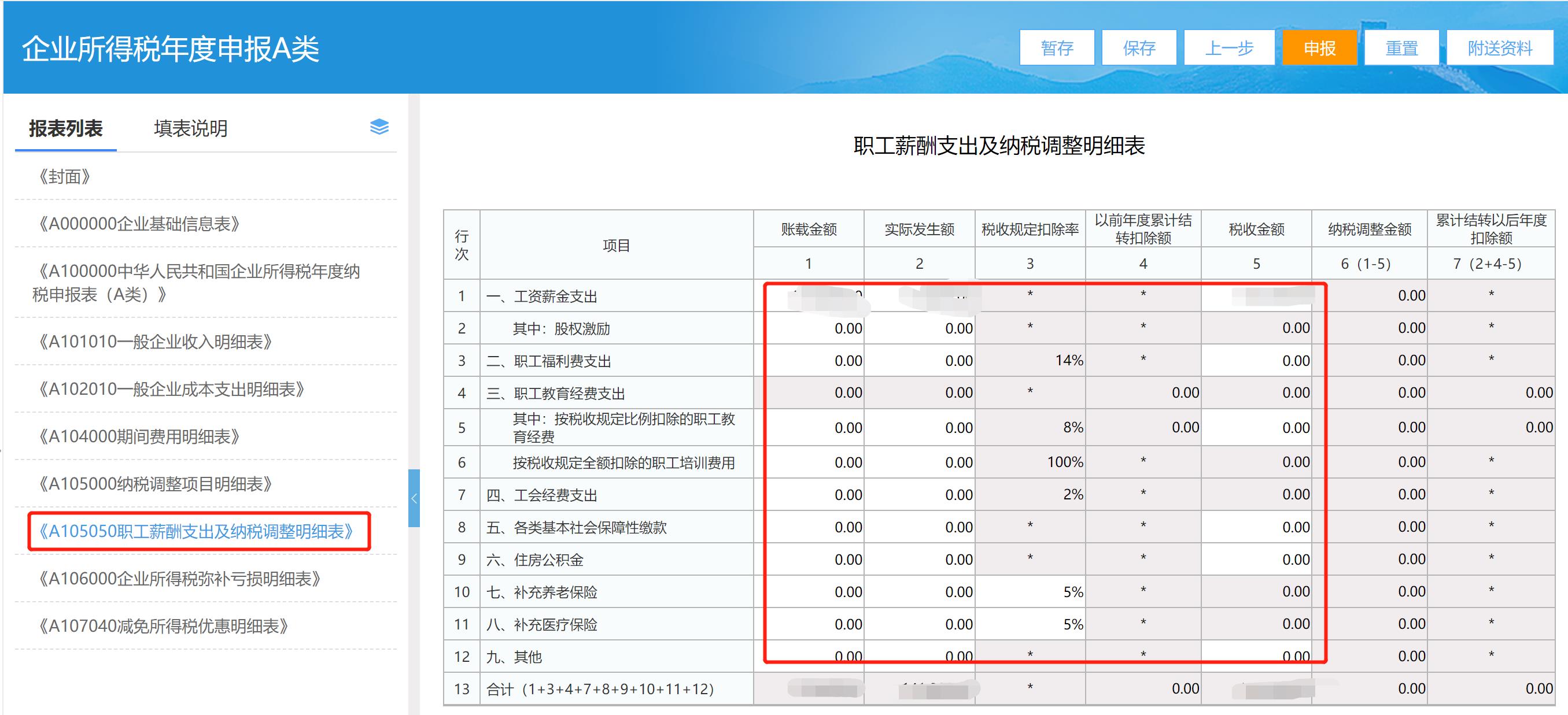 第八步,回到A表,这个时候A表就有数据了,跟你的利润表对一下,有没有漏填的,确认无误就点申报。