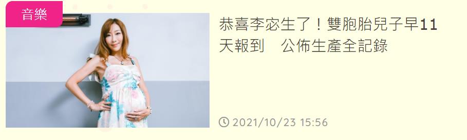 10月23日,根据台媒的报道,女星李宓宣布诞下双胞胎儿子,消息一出,网友们立刻留言恭喜。