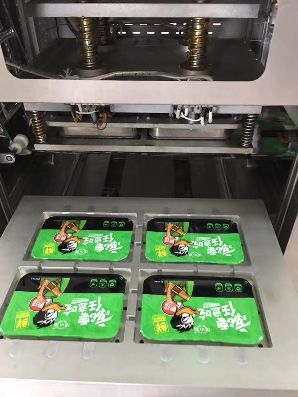 另外,熟食类食品被煮熟后,其细胞级免疫功能已受破坏,容易遭致有害细菌等微生物的侵蚀,抑制有害细菌的滋生繁殖是延长熟食保鲜期的关键技术所在。气调保鲜包装机采用抽真空、充入氮气、二氧化碳等保鲜气体,置换原有的空气,使得被包装熟食空间环境细菌得以抑制(当然,包装车间内的卫生即单位细菌数量也需要严格控制),且利用二氧化碳杀菌、紫外线/臭氧主动杀菌技术,使得包装盒、包装膜等不带菌。这样的包装盒环境,使得熟食从车间感染细菌几率大为降低。经过上述处理的密闭空间的熟食品滋生、繁殖有害细菌的速率大幅降低,从而延长熟食品的保鲜期。
