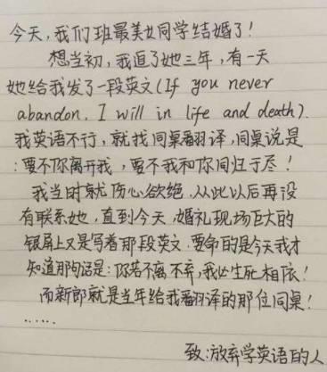 ③ 班花:这个悲剧的根源在于班花的英文同样太渣,典型的“傻白甜”,水平不行,非要炫技,一言不合就写英语,写中文会死哦