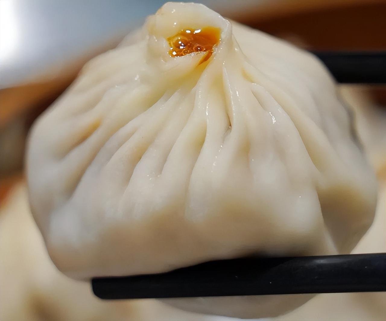相比上海的南翔小笼,无锡小笼个头要大的多,属于酱油红汤馅,口感更清甜,面皮“色白筋柔”,当地人最喜欢蘸醋食用,口感更佳。