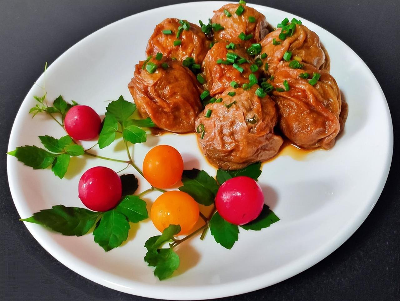 无锡肉酿面筋是江苏无锡的一道特色菜,这道菜主要是把猪肉末酿入到油面筋内,制作成面筋肉球进行烧制,做好的面筋肉球筋道入味,吃着是满满的肉感,咬上一口,肉香四溢,润滑细腻,汤汁鲜香,香浓可口。
