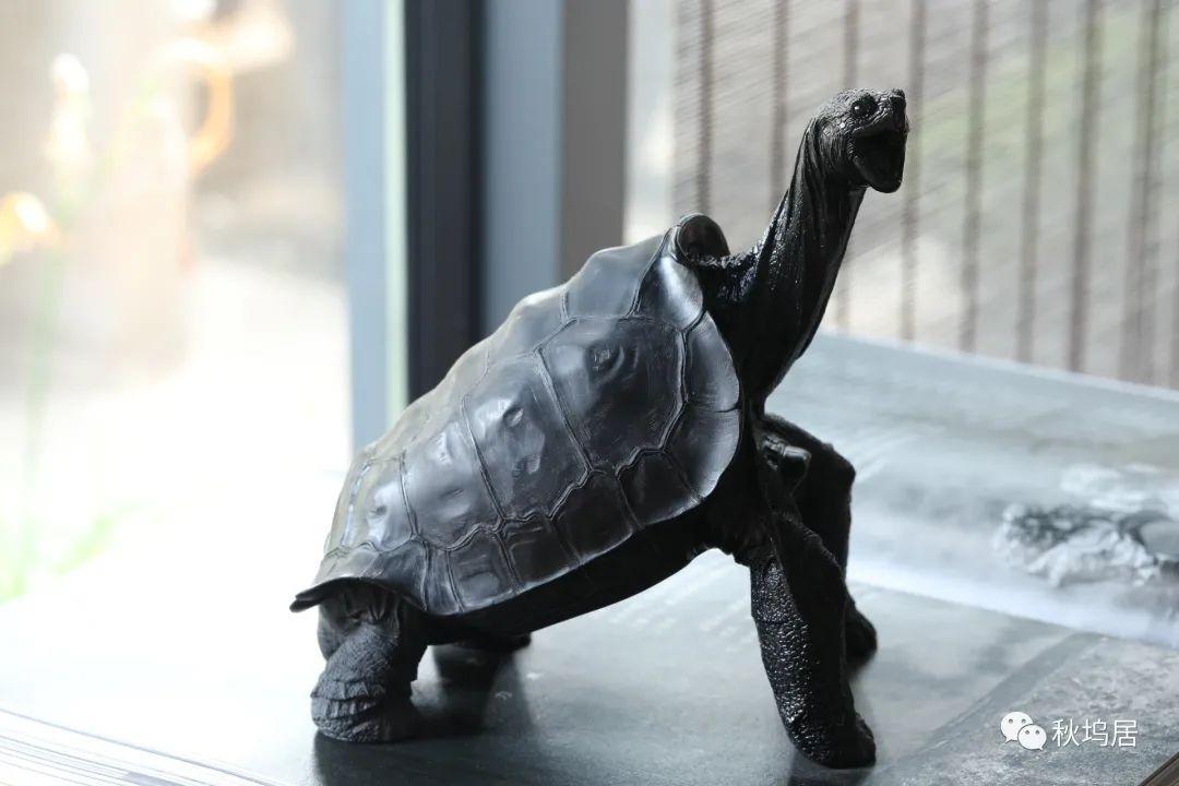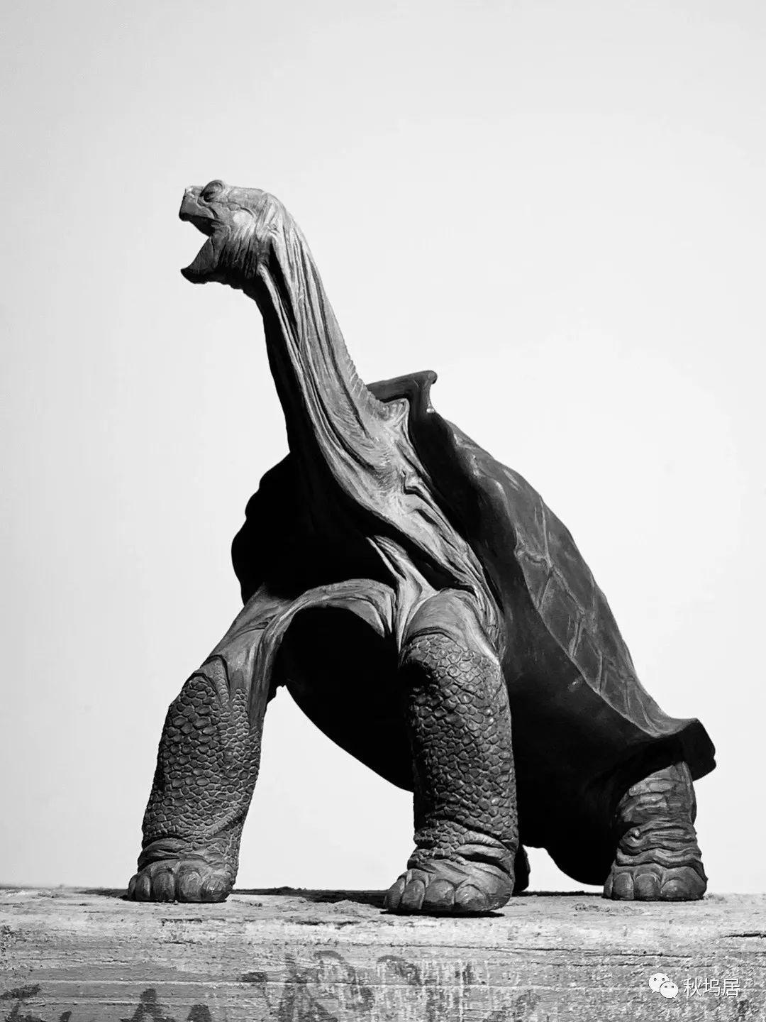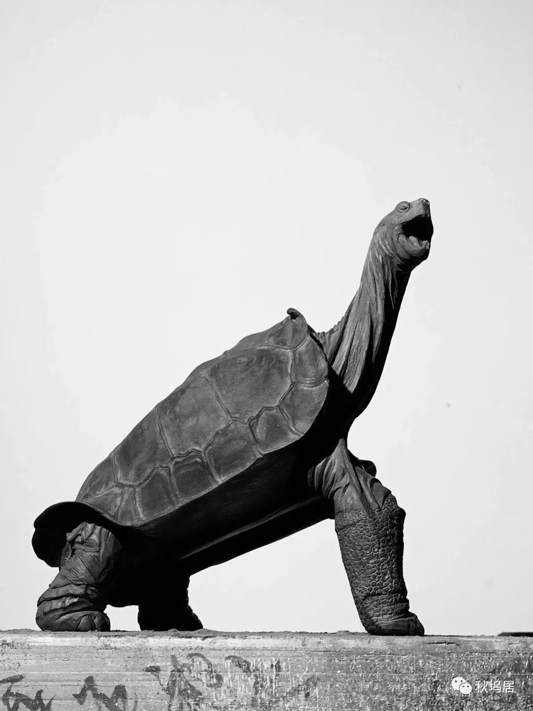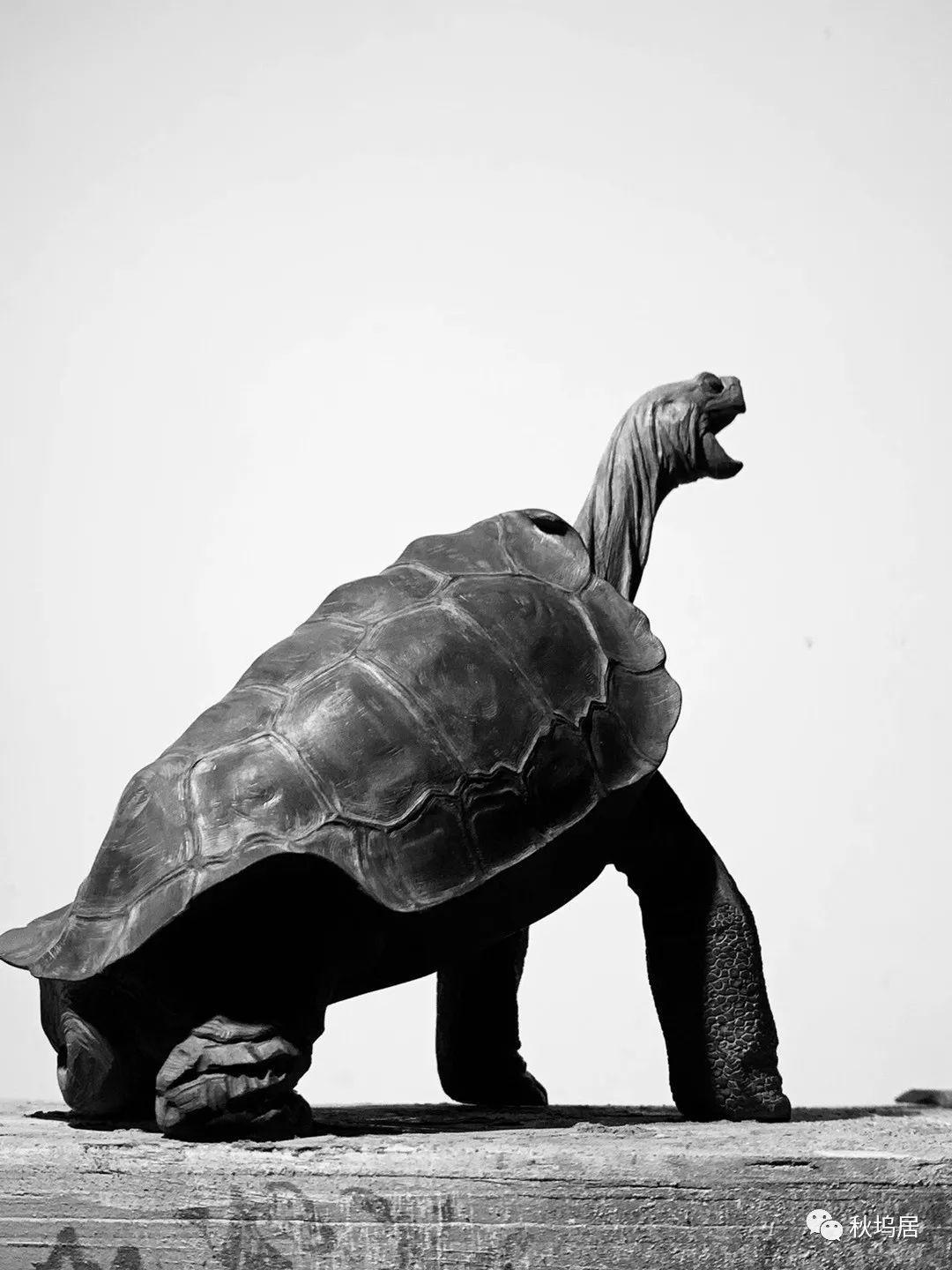 ”孤独的乔治“1971年被发现到2012年确认死亡为止,被认为是平塔岛象龟(学名:Geochelonenigra abingdoni)中已知的最后一个个体。虽然它已不复存在,但是秋坞居以石雕的方式让它永久封存。