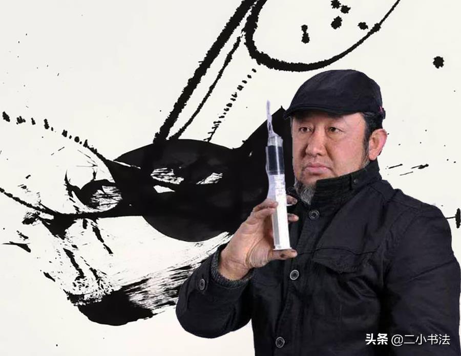 而今天之名的由来,皆因他创造的“针管射书”——针管子装满墨汁,然后利用针管内的压力把墨汁射在宣纸上,使之形成不规则的线条。