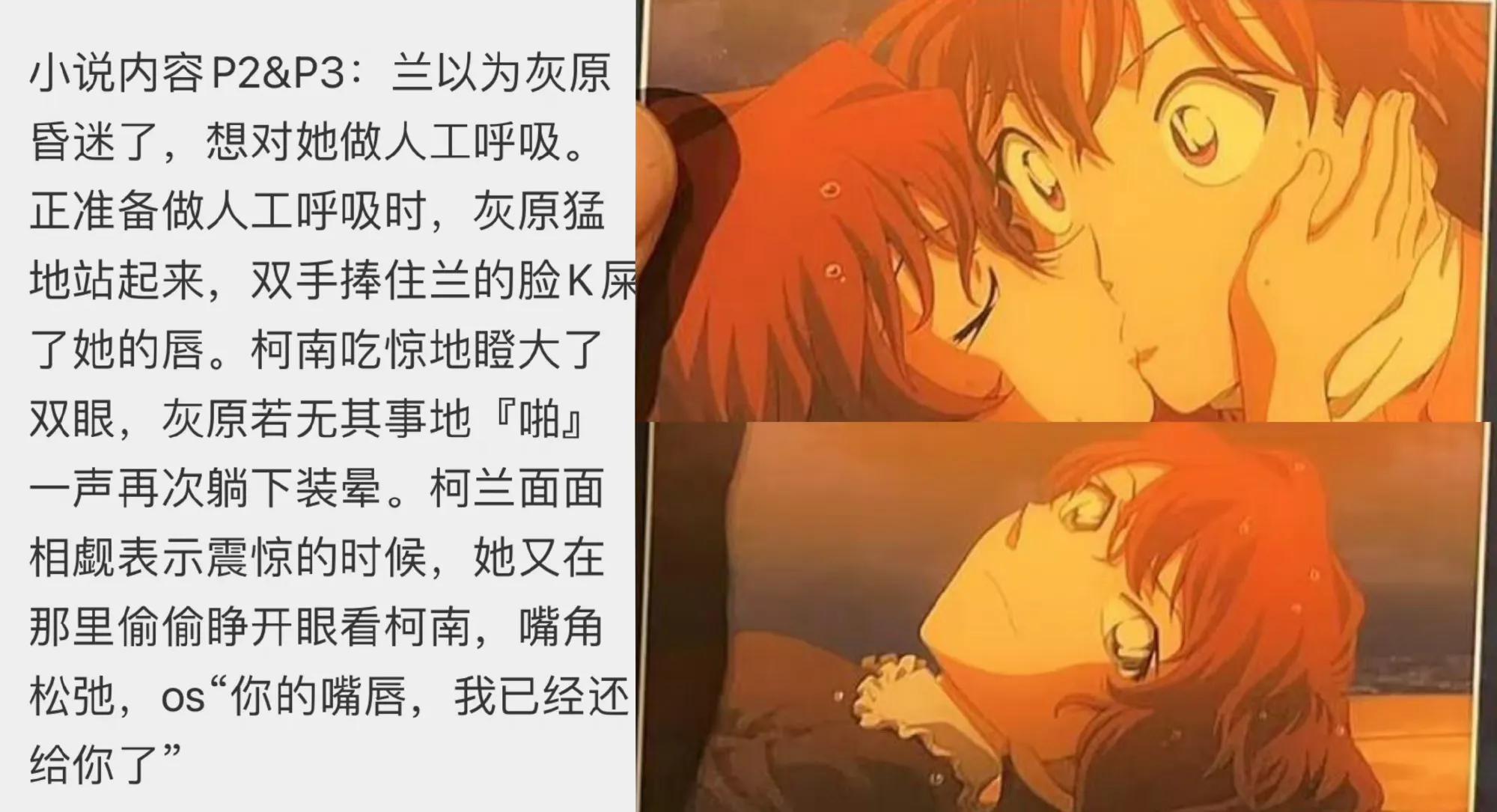 现在又直接让柯南和灰原哀接吻了…不知道作者是不是也站柯南和灰原哀这一对,还是故意给柯哀党的福利。