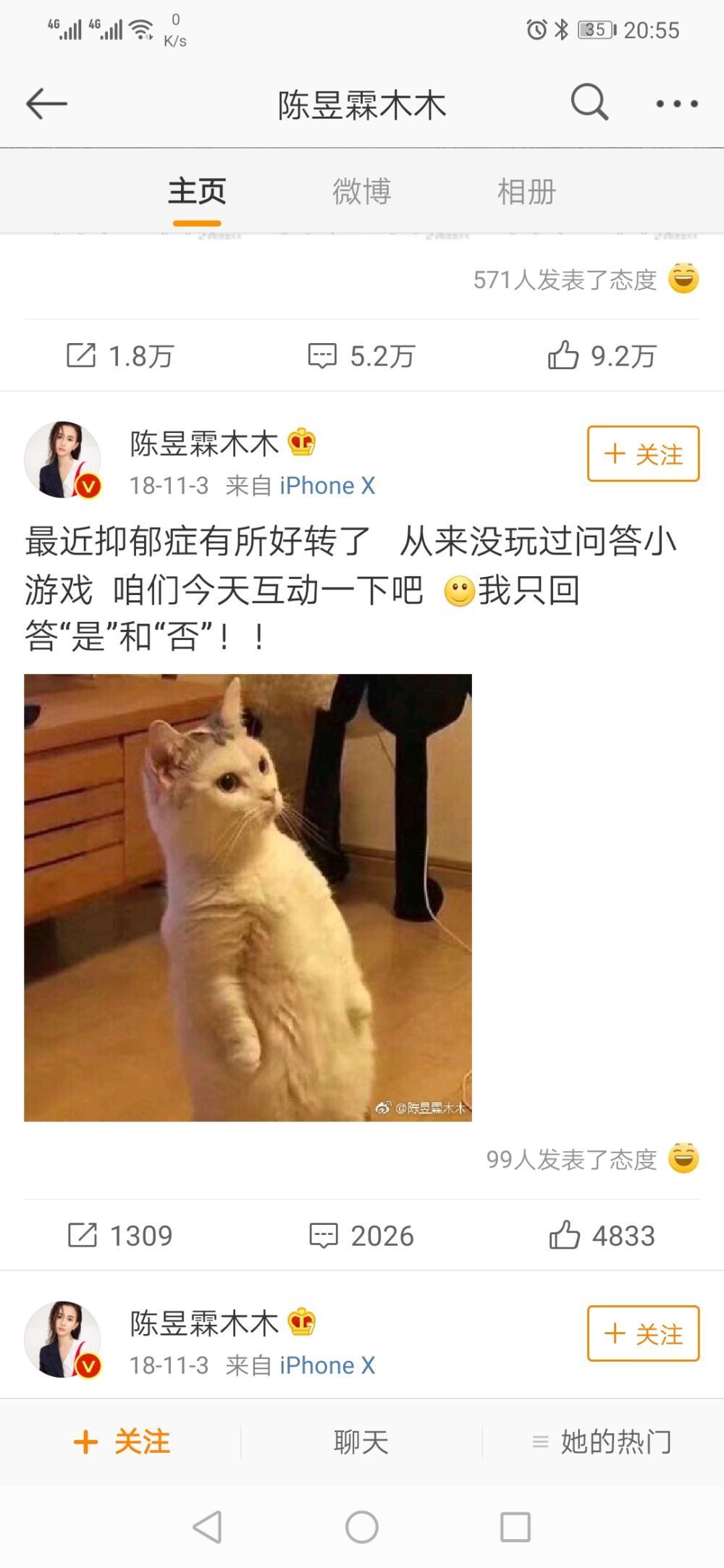 11月3日陈昱霖最后一次发微博称:抑郁症好转;