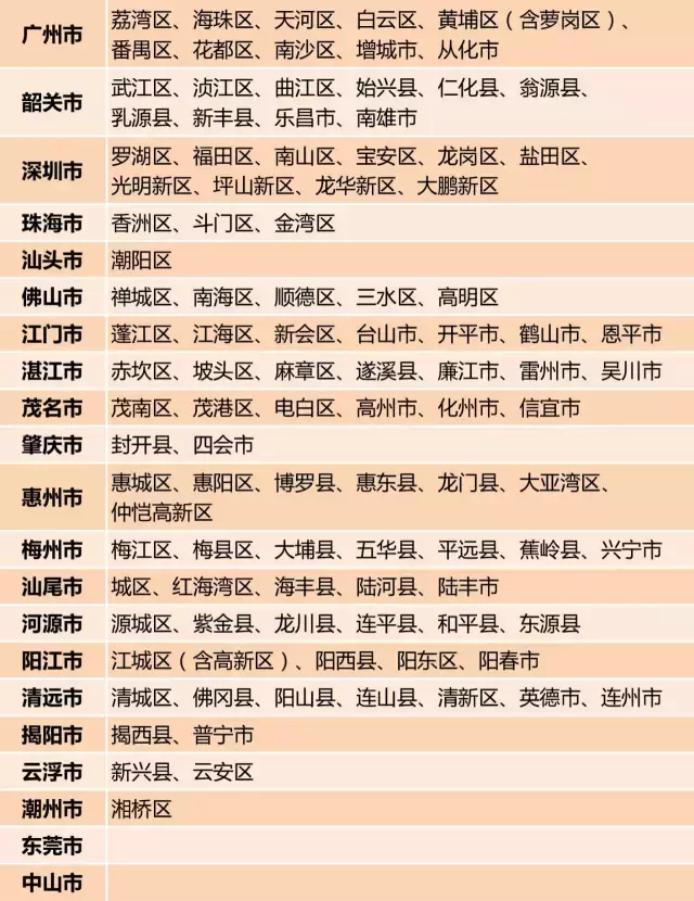据统计,截至2016年底,广东省21个地级市105个县级发生红火蚁分布行政区名录如下: