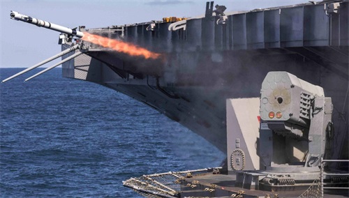 伯克3型的主炮是一门MK45型127毫米舰炮,MK45舰炮是美国海军的标配。炮重21.7吨,炮管长度6.86米。炮口初速808米每秒,射速16-20发每分,最大备弹680发。发射普通炮弹的射程为39公里,亦可发射火箭增程炮弹。