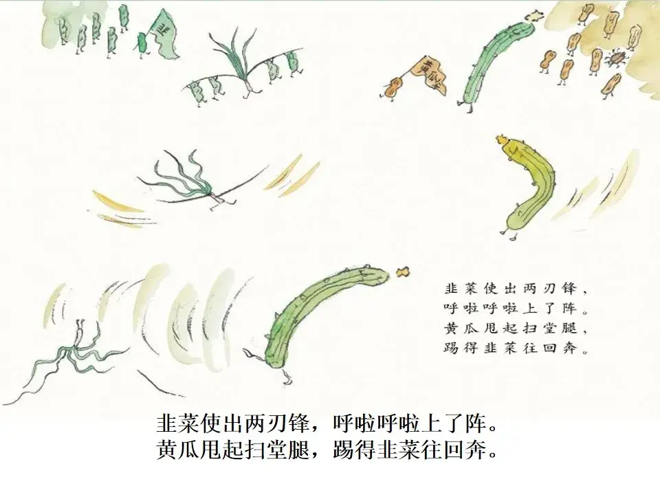黄瓜甩起扫堂腿,踢得韭菜往回奔。