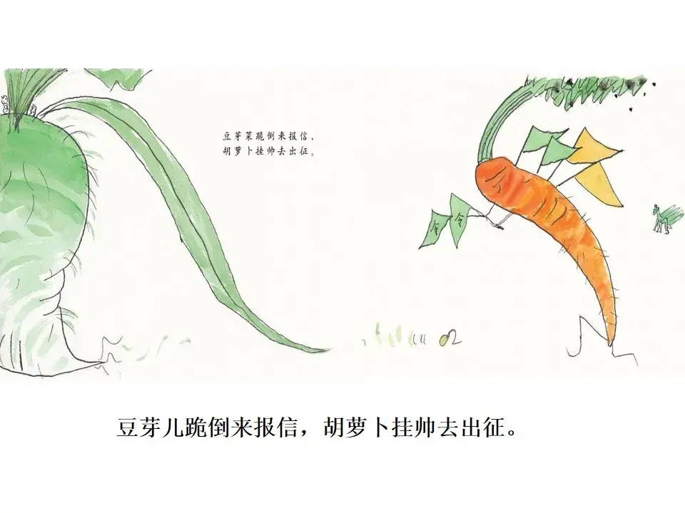 豆芽儿跪倒来报信,胡萝卜挂帅去出征。
