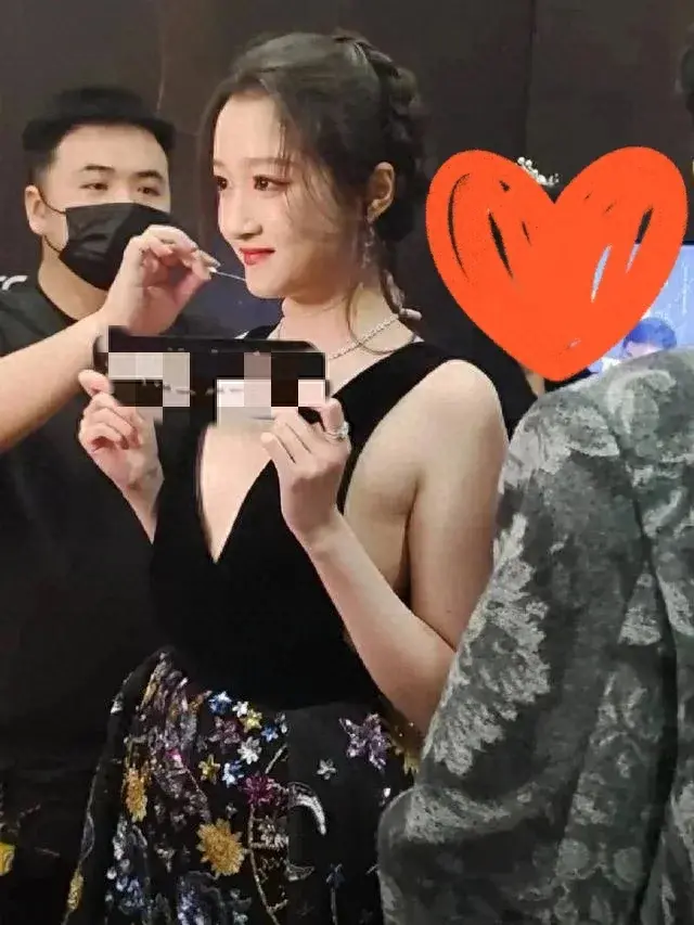 关晓彤穿深V礼服领口和侧面都开叉到腰,侧胸的赘肉全露出来了