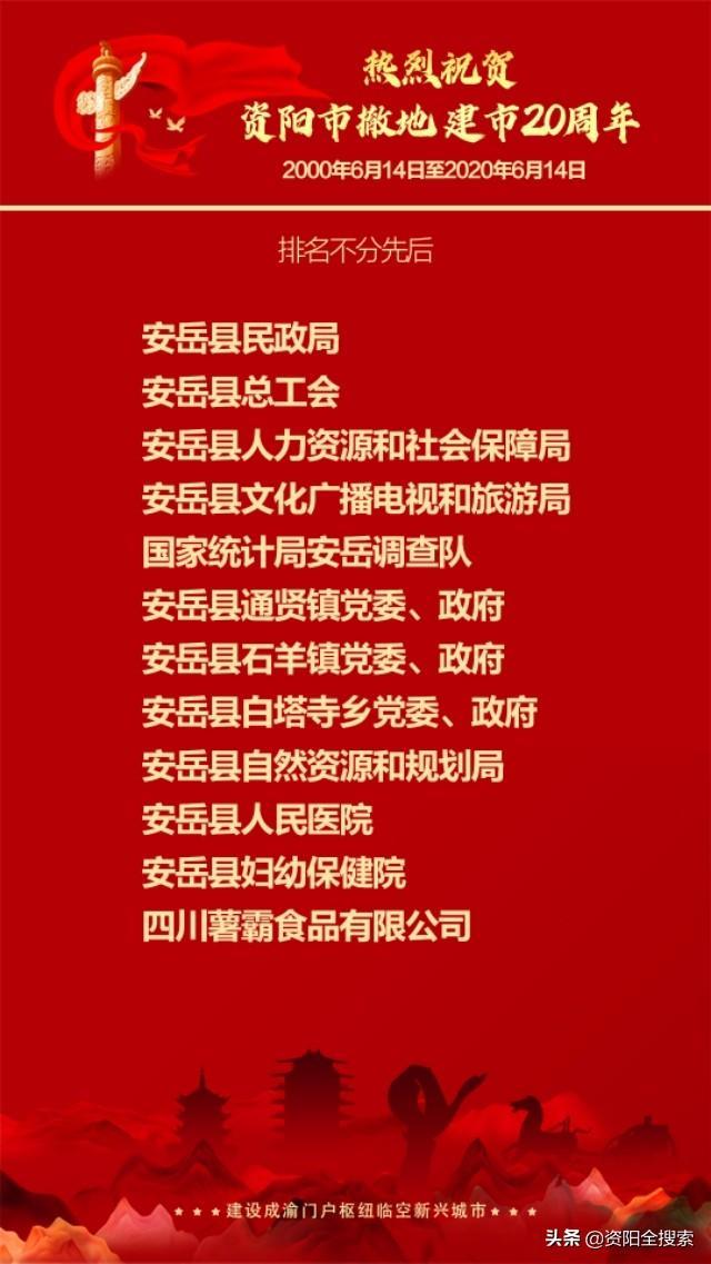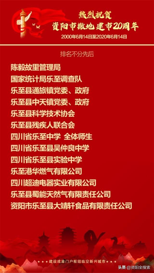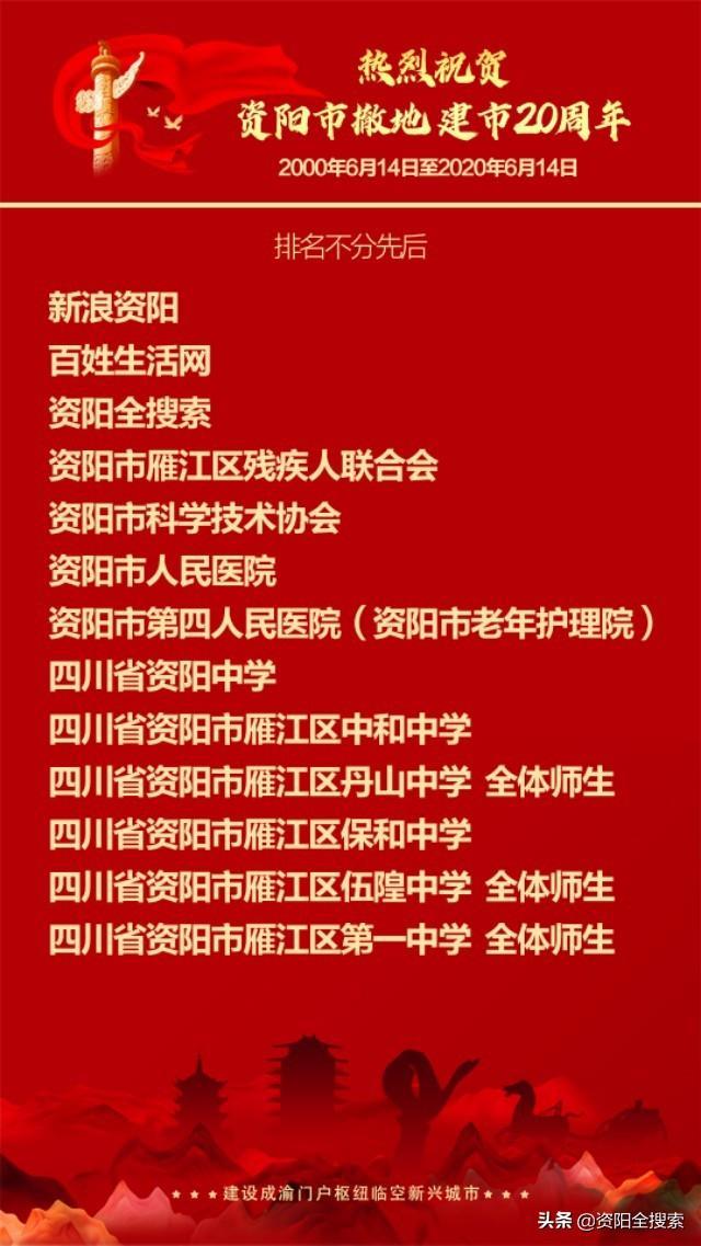 今天是6月14日,热烈祝贺资阳撤地建市20周年!