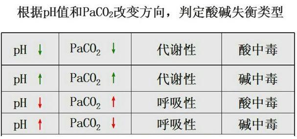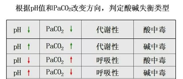 第二步:根据pH值和PaCO2改变的方向,判定酸碱失衡是呼吸性还是代谢性(同向改变为代谢性,异向改变为呼吸性):