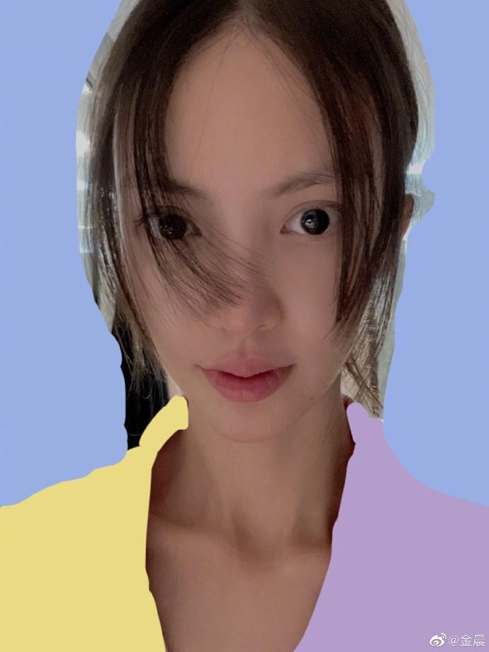 金晨微博晒自拍照 自嘲用脚剪的刘海难免有失误