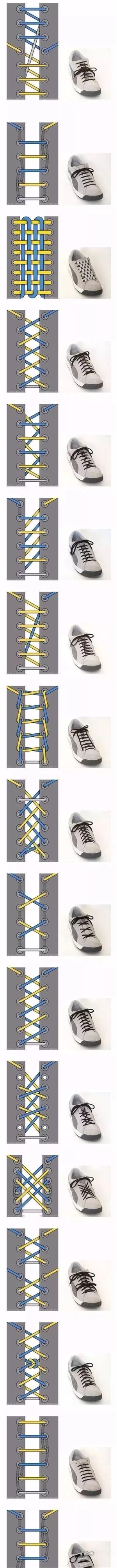 系鞋带的方法大家都习惯一种,但同学们有没想过鞋带的绑法还有很多,不一样的系法,让鞋子也有不一样的感觉。今天小编给大家分享17种花式绑鞋带的方法,没事换着一个绑法,穿出自己的个性。