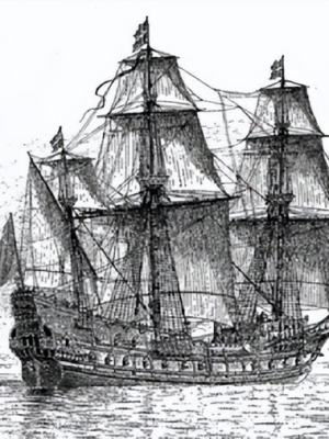 ▲“战神号”素描船形,可见其较之传统的卡拉克帆船图片素材船型已有明显变化