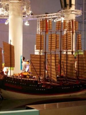 ▲哥伦布发现新大陆时动力乘坐宝船的“圣玛利亚号”模型