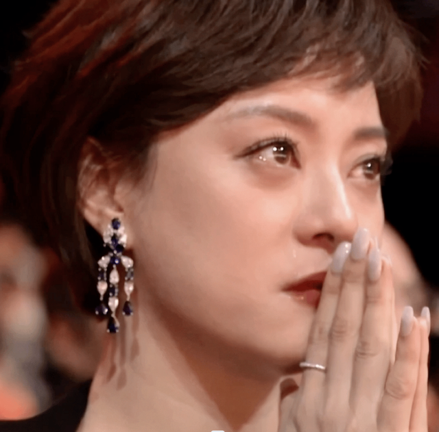 这边热依扎刚凭借飞天奖拿下,台下孙俪激动得为其热泪盈眶。