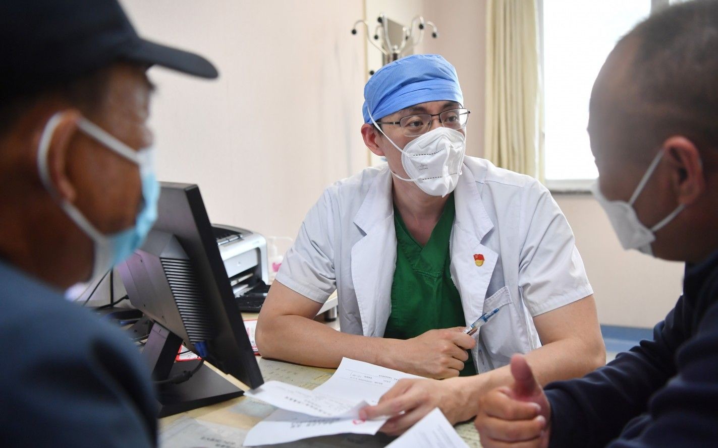 北京大学泌尿外科医生郝瀚在门诊为患者问诊,他也是科室里第一个援藏医生。新京报记者 李木易 摄