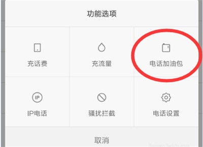 2、找到【电话加油包】,点击进入;