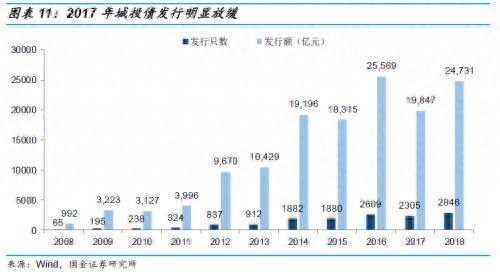 但是2015年国内GDP增速连续多个季度下滑,稳增长成为首要任务,基建放量是主要的调节手段,城投政策开始走向边际宽松。2015年1月证监会第113号令[29]运行公开发行公司债,地产公司和类平台企业成为主要发行主体, 2015年5月,财政部等联合发布《关于妥善解决地方政府融资平台公司在建项目后续融资问题的意见》(国办发[2015]40号)[30],要求支持在建项目的存量融资需求,发改委随后放宽企业债发行标准,并随后进一步简化了申报程序(发改办财金[2015]1327号[31]、3127号[32]),2015年下半年以来大量资金涌入融资平台,城投债发行再度迎来高峰,2016年城投债发行规模2.56万亿元,同比增长39.61%,发行只数2,609只,同比增长38.78%。