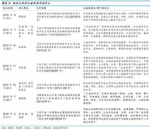 除此以外还陆续有文件提及“公益性资产”概念,2881号文中认定“公益性资产”是指主要为社会公共利益服务,且依据国家有关法律法规不得或不宜变现的资产。大部分文件提及到的“公益性资产”包括公立学校、公立医院、公园、事业单位资产等。