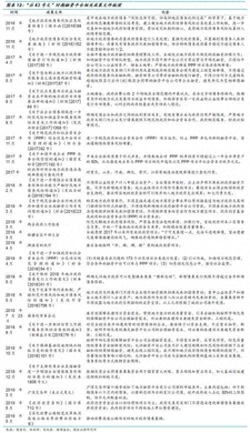 整体来看,“后43号文”时代,政策执行力度明显加强,虽然对平台监管有紧有松,但是“严控地方政府债务风险,督促平台转型并实现与政府融资职能脱钩”的主线条从未改变。