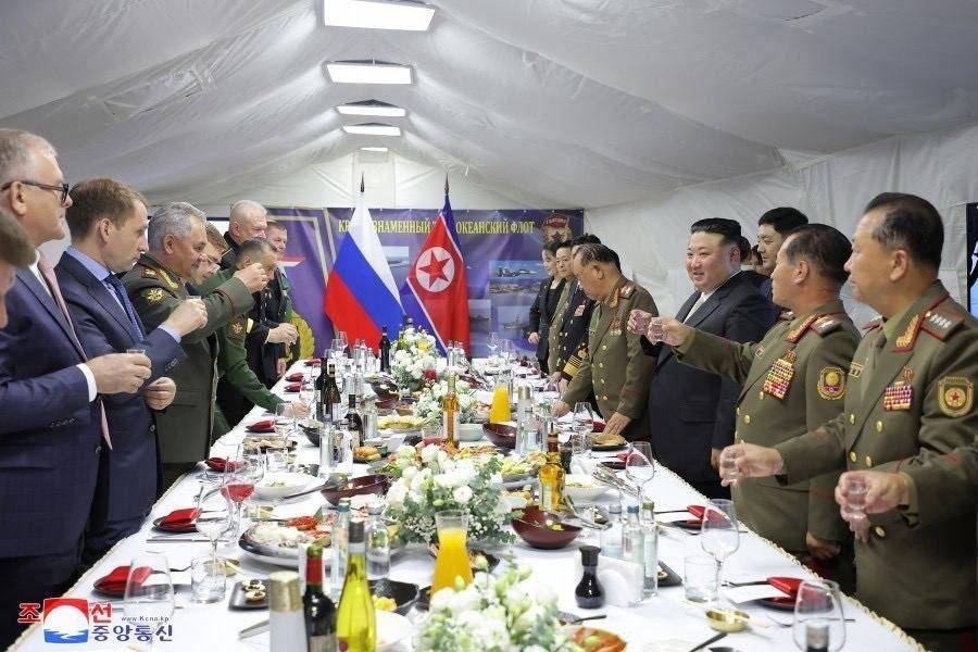 在结束了双方的会谈之后,绍伊古又亲自设宴款待了金正恩一行,值得注意的是,宴会的地点并不在富丽堂皇的大饭店里,显然是在临时搭建的军用帐篷里,这也表现出“一切从打仗出发”的态度。而出席宴会的双方人员,大多身着戎装,这也体现出此次访问会晤高度的军事色彩。在宴会上,朝鲜国防相强纯男的表态十分直接,表示朝军愿意和俄军“加强战斗团结和合作”,“坚定维护世界和地区和平稳定”。看起来,俄朝两国的军事互信水平已经相当高了。