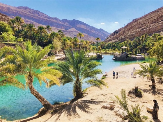 除了沙漠、海湾,这个国度还有一些漂亮的山泉。瓦迪· 巴尼 ·哈立德山泉离马斯喀特约200公里,水是那种平静,凉爽的蓝绿色,像钻石一样清澈。