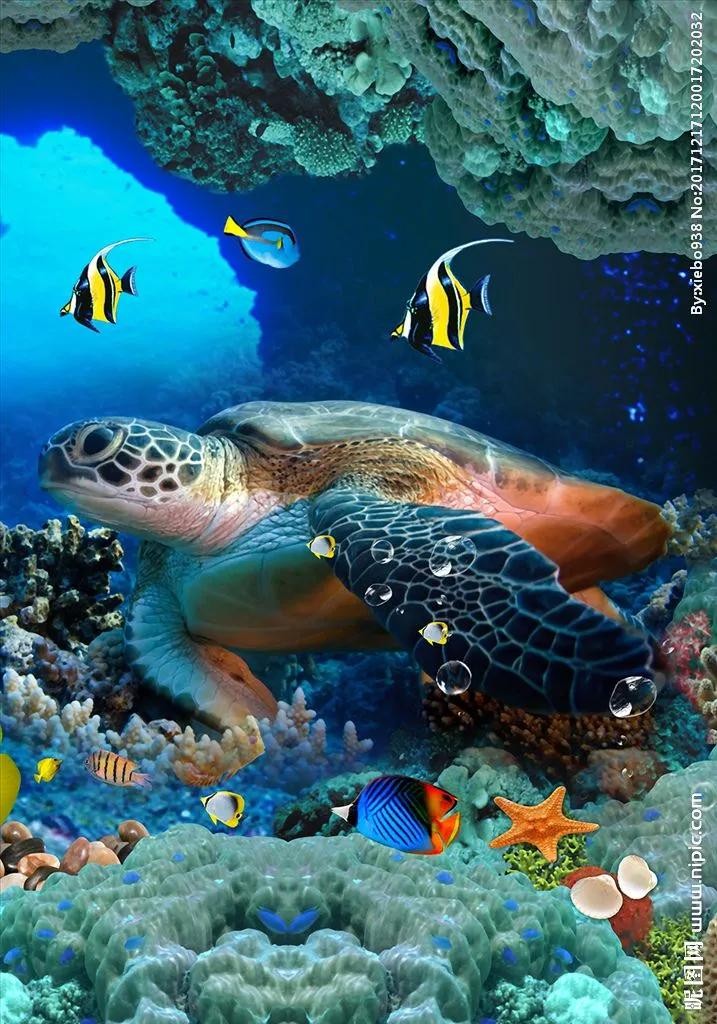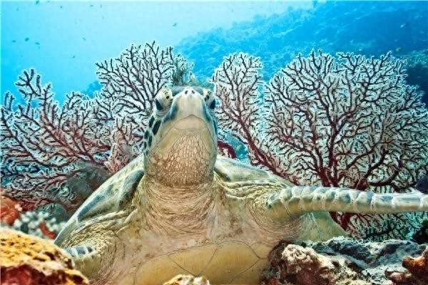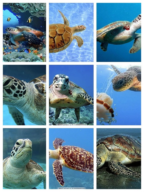 海龟属海龟科、海龟属动物,生活在亚热带近海上层,终身生活于海洋中。海龟是游泳的好手,长长的前肢像桨一样,使它们很适合水中的生活。海龟的食性很杂,以鱼类、甲壳动物、软体动物以及海藻等为食。