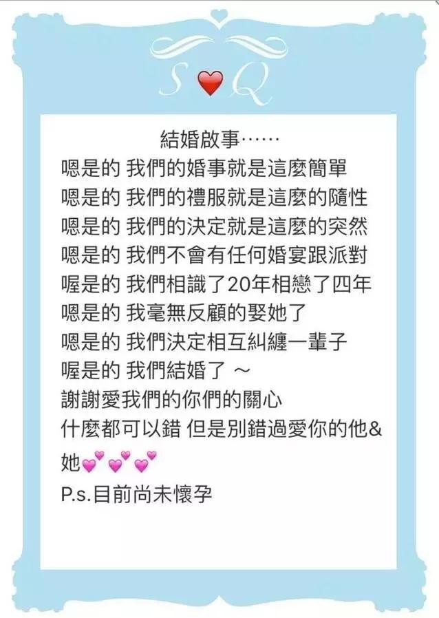 舒淇结婚了!相识20年其实两人早就注册了!
