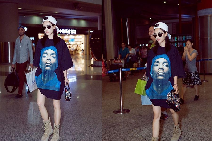 王子文大T恤配Dior包 机场look瞬间秒杀宋茜