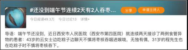 ① 2025-06-19 西安市人民医院《端午提醒!2人吃粽子吞枣核,医生:务必24小时取出……》