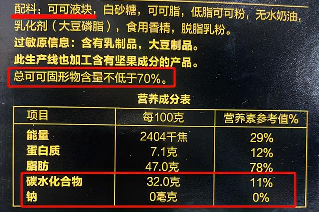 总可可固形物含量代表巧克力的纯度,一般来说,纯度越高,糖含量也相对偏低。
