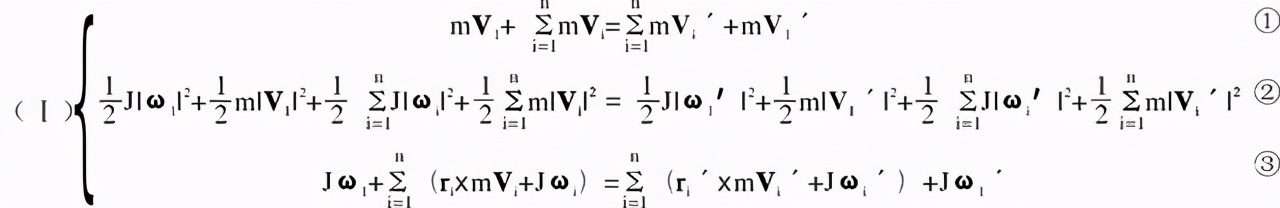 其中m是电磁力子的质量,V1是“额外”电磁力子的速度,n是封闭曲面S内处于动态平衡时的电磁力子数量,Vi是闭合曲面S内其中一个电磁力子的速度,Vi'是碰撞扰动后曲面S内其中一个电磁力子的速度,V1'是碰撞扰动后(即曲面S内的空间恢复“平静”后),闭合曲面S里释放出的一粒“额外”的电磁力子的速度,J是电磁力子的转动惯量,ri是对应于速度为Vi的电磁力子的矢径,ωi是对应于速度Vi的电磁力子的自旋角速度矢量,ri'是对应于速度为Vi'的电磁力子的矢径,ωi'是对应于速度为Vi'的电磁力子的角速度矢量,ω1'是对应于速度V1'的电磁力子的角速度矢量。n在扰动前后保持不变。方程①根据动量守恒定律,方程②根据能量守恒定律得出,方程③是根据角动量守恒定律得出。由于闭合曲面S内的电磁力子的运动状态在碰撞扰动前后保持不变(但扰动过程中发生变化),在碰撞扰动前后,闭合曲面S内的电磁力子数量保持不变;也就是: