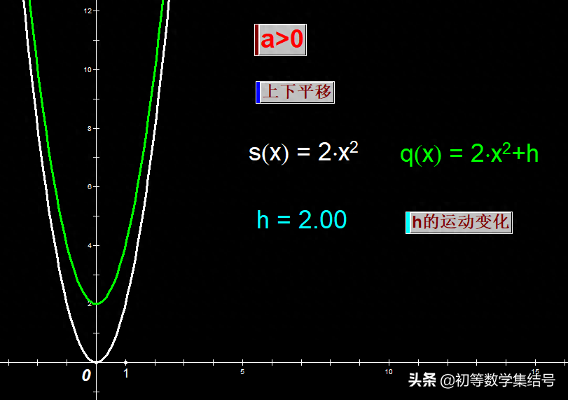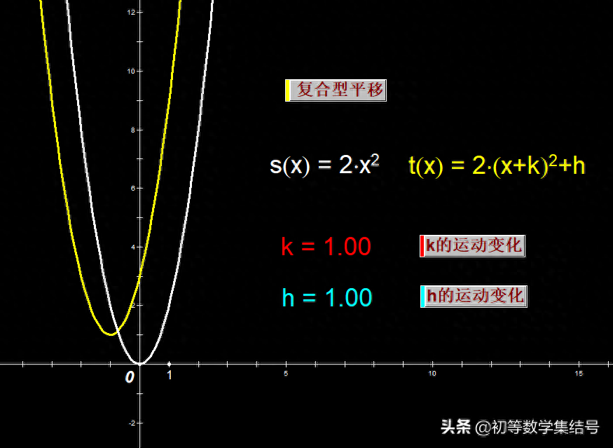 从函数图像平移规律可知,黄色抛物线是由白色抛物线向左平移1个单位再向上平移1个单位所得,也可以看做“由白色抛物线向上平移1个单位再向左平移一个单位所得”。