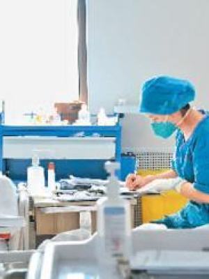 近日内容,在吉林大学白求恩第二医院ICU病房征文,白求恩精神是什么精神,医护人员正在图片工作。 人民网记者 李 洋摄